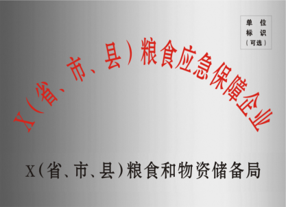 2.“X(省、市、县)粮食和物资储备局”字体如上,颜色为黑色;“X(省、市、县)粮食应急保障企业”字体如上,颜色为红色。